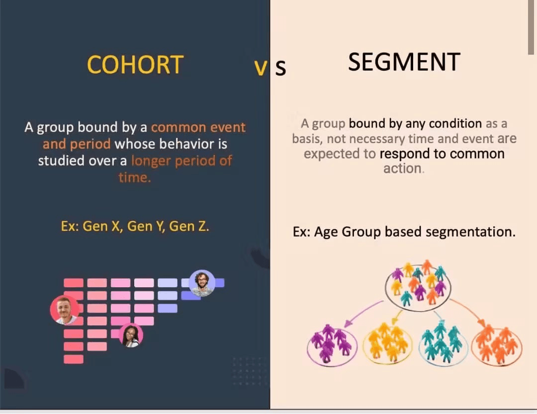 A true cohort is a longitudinal study, people acquired at a certain time, tracked over a period. Think Gen Z vs. Gen X. You track their behavior over time and observe patterns.